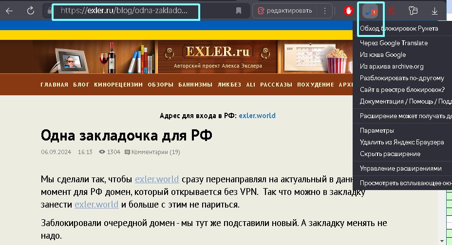 Мы сделали так, чтобы exler.world сразу перенаправлял на актуальный в данный момент для РФ домен, который открывается без VPN. Так что можно в закладку занести exler.world и больше с этим не париться.