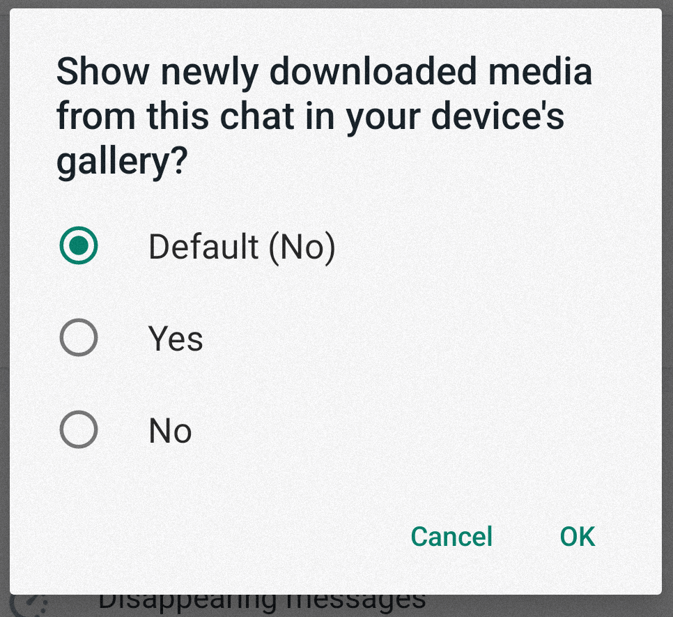 А где отключается чтоб фотки из Ватсапп а общей галерее не отображись? В идеале чтоб фотки одного клиента не отображались, а остальных можно.