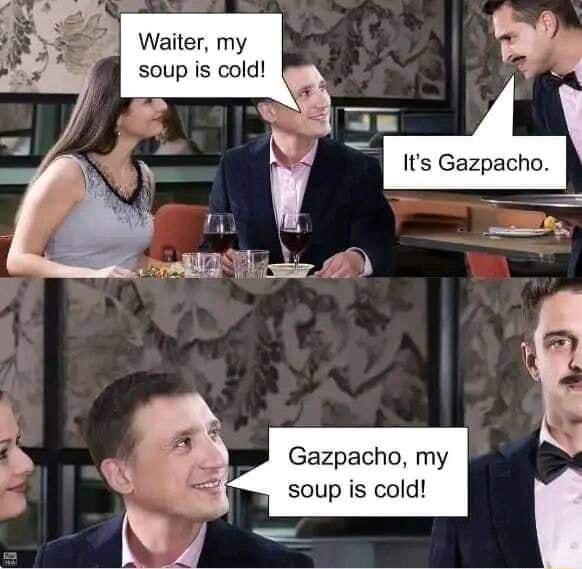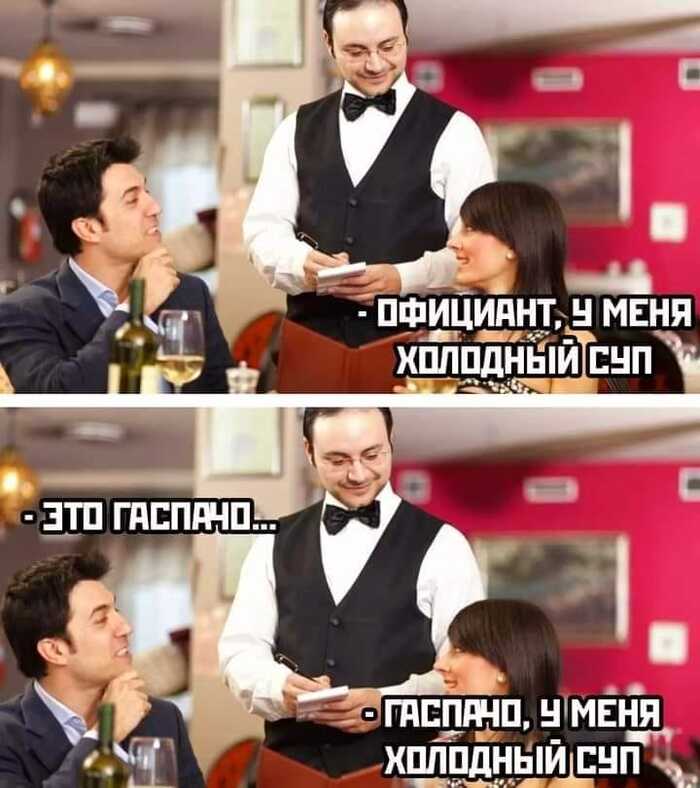Это да. Вот только что зашли с женой поужинать. Заказали по холодном супу и салату. Когда прошло 40 минут, а заказ не принесли, позвал менеджера и спросил - Что происходит. Ответ меня убил - А почему вас не предупредили о задержке. Именно так - почему вас не предупредили. Он не интересовался предупредили нас или нет, ему было интересно почему не предупредили. Не нашёлся что ему ответить, так что бы не впасть в ярость.