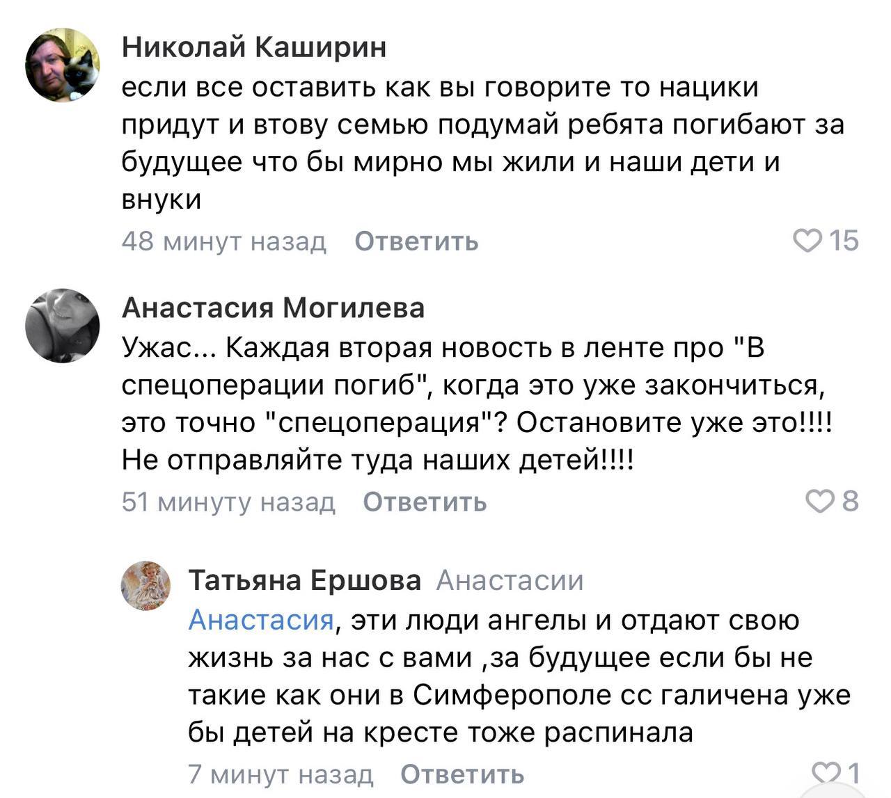 Ну, и, предположу, что 80% семей, потерявших своих сыновей на войне, похоронок никогда не получат - судя по фотографиям тел погибших солдат рф, отсутствию документов и общему бардаку, не говоря уж о случаях похорон в братских могилах на территории Украины, да и мобильные крематории не стоит забывать.