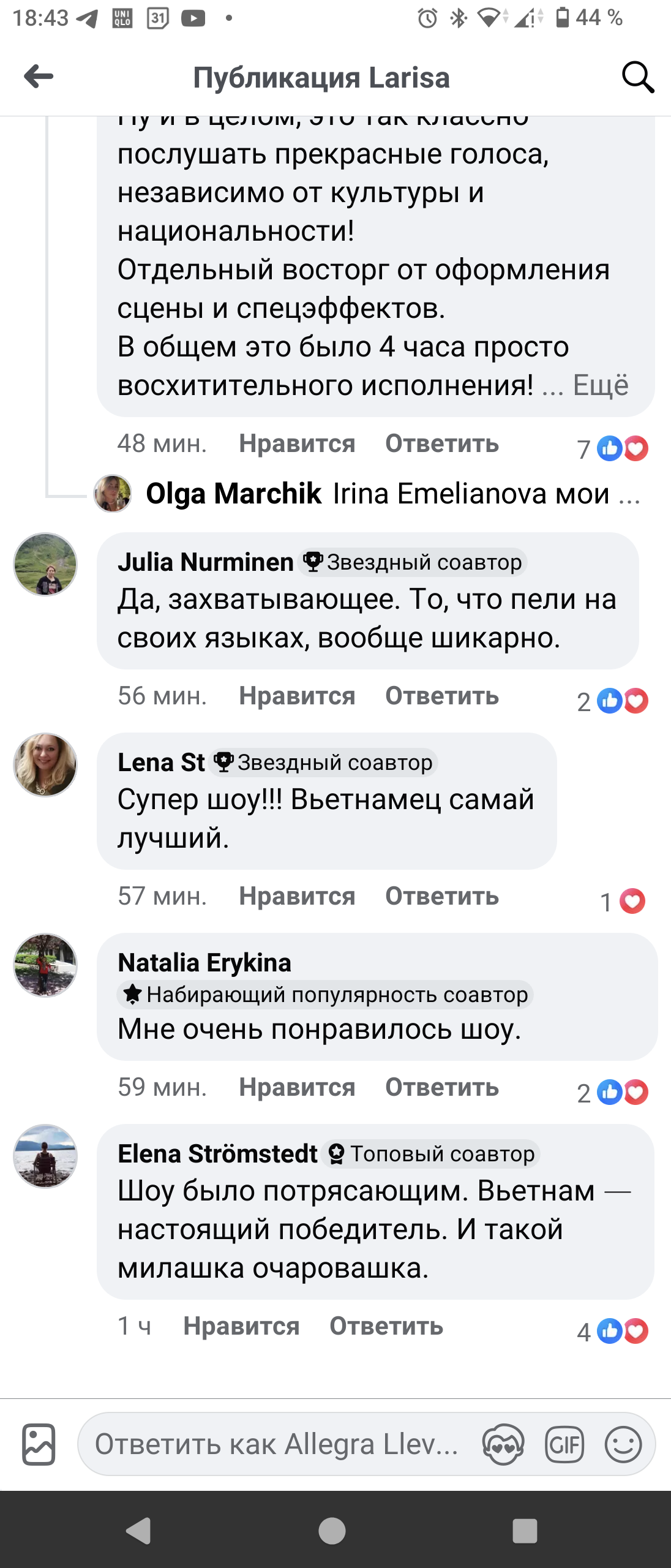 Ну что, в Мордоре провели это "Интервидение". Участники были очень представительные, очень. Вопреки ожиданиям, победу присудили не славному представителю путинюгенда Шаману - тот сам скромно попросил жюри не отдавать ему победу, потому что, мол, "Россия уже победила" (но не уточнил, где именно), - а участнику из Вьетнама.