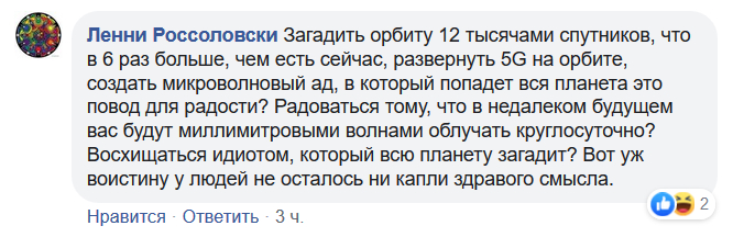 Боюсь, мы еще услышим шокирующие расследования, про то, как спутники проклятого Илона Маска вызывают засухи, землятресения, наводнения и приступы бешенства у россиян. Еще прочитаем откровения Рогозина, что очередной навернувшийся российский спутник - это проделки Маска с его группировкой вредоносных спутников, и прочие "ужасы нашего городка".