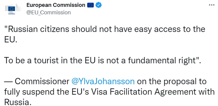 Из телеграмма Сталингулаг:С 24 февраля по 24 августа Евросоюз заплатил Кремлю более 87,5 миллиарда евро за ископаемое топливо. Это половина всех доходов РФ — сообщает независимая международная организация CREA (Центр по исследованию энергии и чистого воздуха).Но визу не получит бедолага из Омска, который выходил на антивоенные митинги и находится под следствием за политическую позицию, а российские чиновники прекрасно прилетят на лазурку, потому что заранее обзавелись паспортами ЕС и дружбой с местными бюрократами