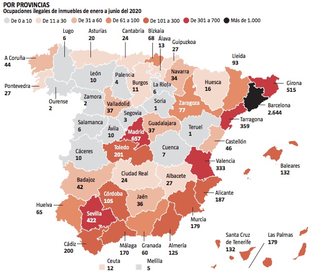 Вот карта, которую запостили в группе "Русская Испания" (источник я пока не нашел, поэтому информация еще не подтвержденная, однако это все очень похоже на правду, и давно известно, что в Барселоне проблема окупасов стоит наиболее остро).