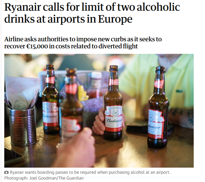 Я дважды был свидетелем как высаживали пьяных в дупель пассажиров и из-за них мы вылетали на часа-два позже. Правда, решение не в том что ограничить количество дринков, а сделать их 10Х дороже. Когда бокал вина charles shaw или стопка виски будет стоить $50 (+ tax) желающих выжрать бутылку в баре до рейса будет меньше.