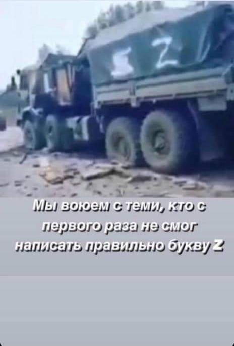 Ооо. Нам наконец-то объяснили, что это значит. "В букве Z зашифрована фраза "За Победу", буква V означает "Сила V Правде". Цитирую документ, опубликованный в Телеграм-канале Венедиктова. Боже, какие уроды...
