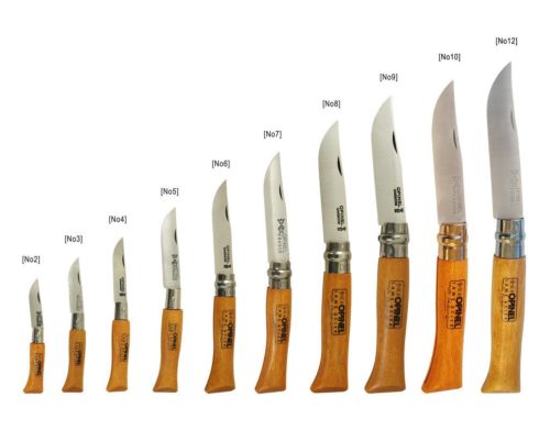 Попалась мне недавно статья о французском ножевом бренде Opinel (вот их официальный сайт). Это фамилия такая, бренд существует 130 лет, причем все это время дизайн этих ножей не меняется, и они достаточно популярны. У этих ножей 12 размеров, лезвия делаются из двух вариантов сталей - Sandvik 12С27 и AFNOR XC90 Carbon Steel.