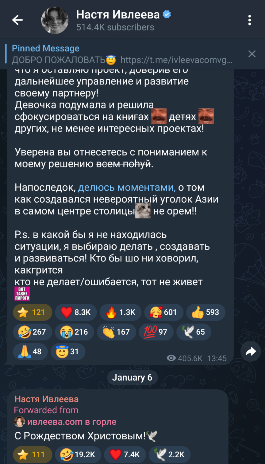 Затюканная Настя Ивлеева сегодня ночью поздравила православных с Рождеством.