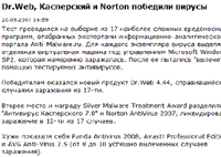 Второе место и награду Silver Malware Treatment Award разделили "Антивирус Касперского 7.0" и Norton AntiVirus 2007, ликвидировавшие заражение в 12-ти из 17 случаев.