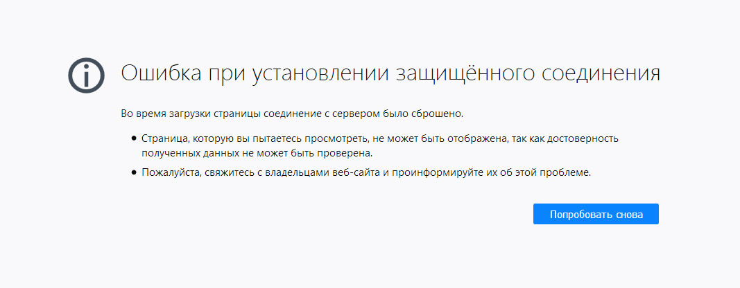 Пардон за некоторый оффтоп. Просто больше некуда написать (надо сделать отдельный пост для подобных вещей, думаю).За последнюю неделю несколько раз не мог зайти на сайт. Заходил с Мозиллы. С Хрома тут же зашел нормально. При этом мозилла предложила обновиться, обновил - зашло. В общем, странный баг. На других сайтах не сталкивался с таким.Причем, проблема была что дома, что в офисе.Скрин "ошибки" прикладываю. Мало ли, окажется полезным.