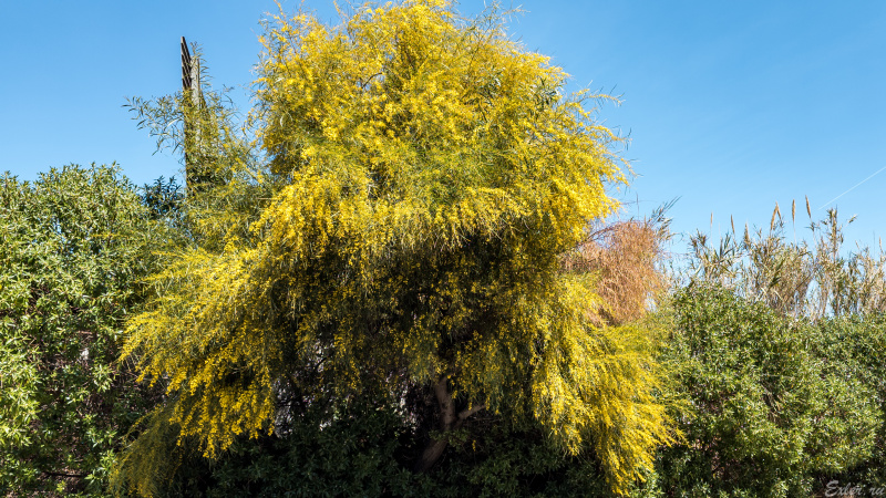 У нас почему то мимоза стала представителем акаций. В то время как это огромный род, и например, акация стыдливая вообще сиреневого цвета.