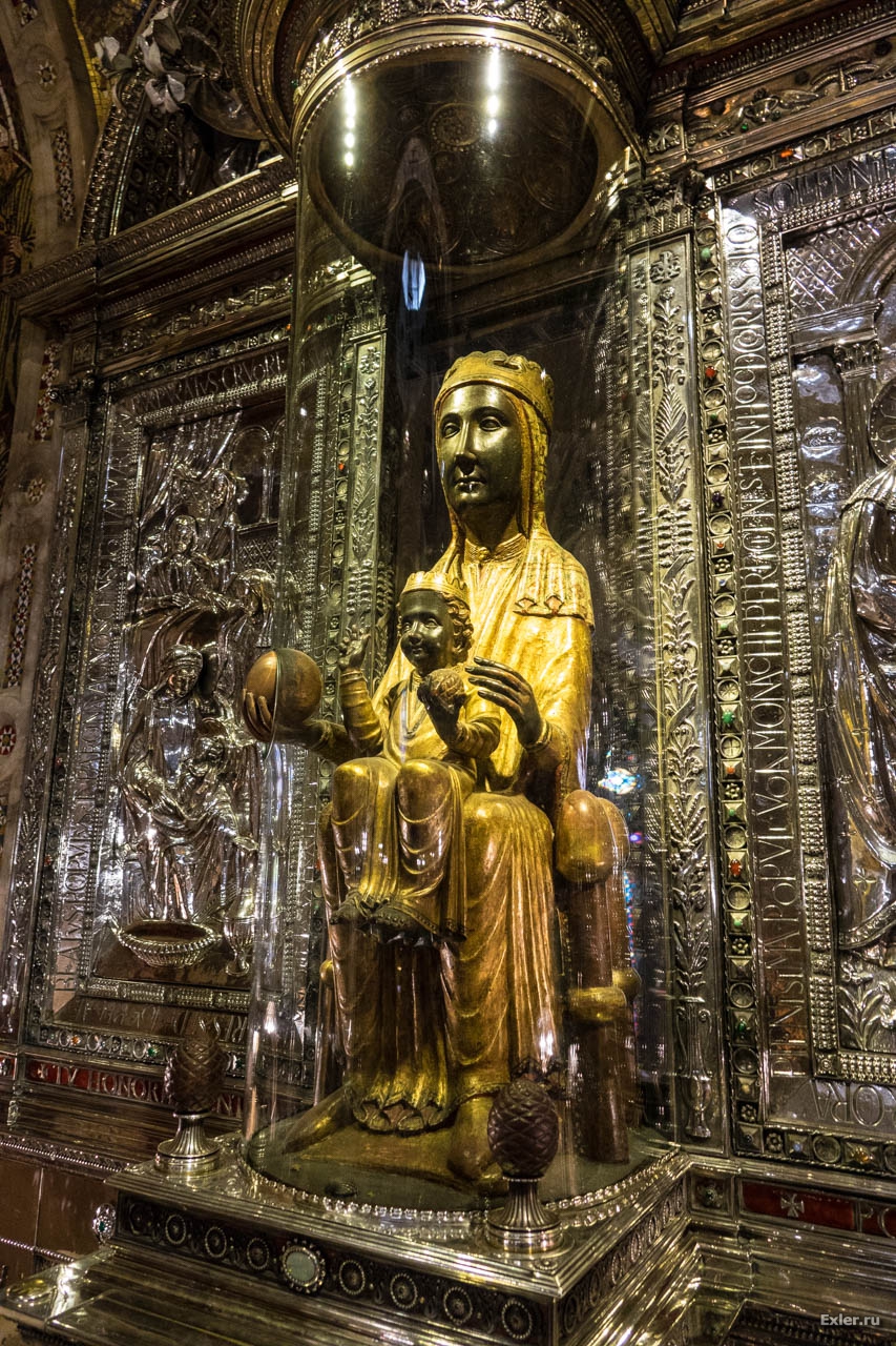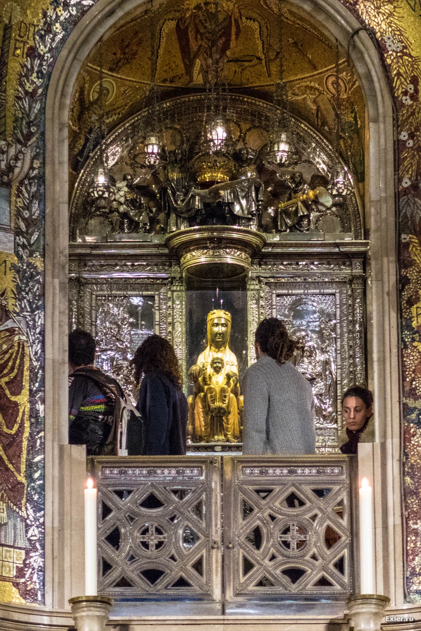 В прошлый раз мы не стали стоять в длиннющей очереди, чтобы вблизи посмотреть на статую Богоматери, называемую здесь La Moreneta - "смуглянка", "Черная Мадонна" (ее так называют из-за почерневшего лака, который покрывает фигуру Богоматери).