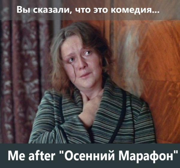И... я почувствовала себя англичанином. На кой черт. Ненавижу "Осенний марафон". Это хороший и жизненный фильм, от которого хочется повеситься.