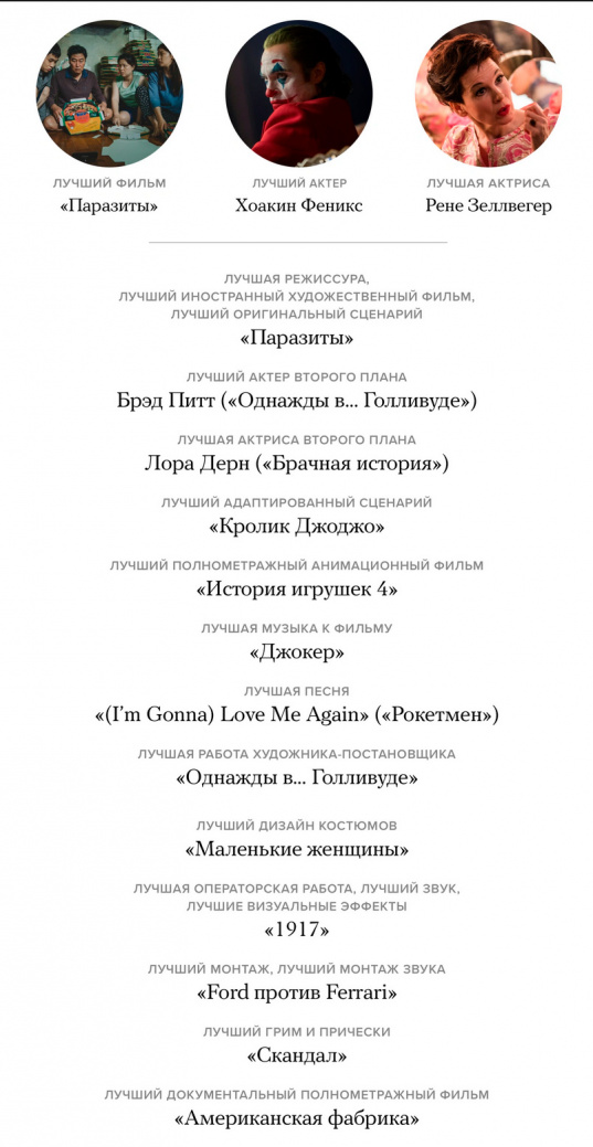 Главные победители "Оскара" - в "Медузе" собрали в одной картинке.