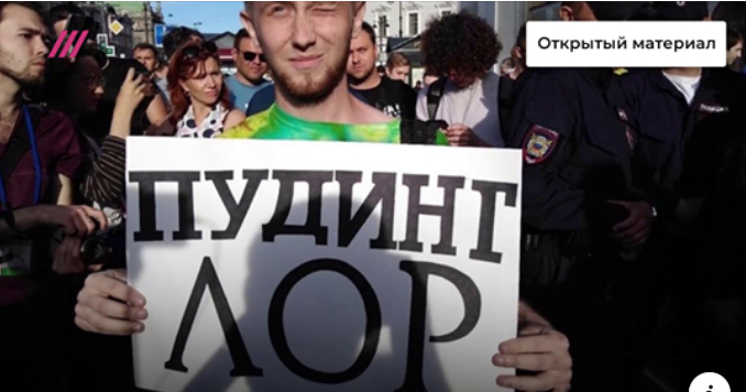 23 июня в Петербурге проходила несогласованная акция против полицейского произвола. Примерно 20 человек стояли с плакатами. Один из них, художник Алексей Соловьев — с плакатом «Пудинг лор». В тот же день Соловьева повязали и теперь собираются обвинить в организации несогласованного митинга. (Отсюда.)