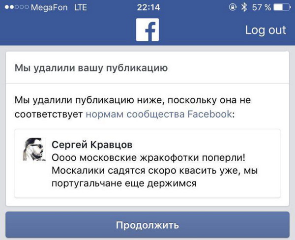 Хотелось бы выяснить, за какие еще слова Facebook может забанить. За "москвичики", "москвичочки", "собянчики" или "москучики"?