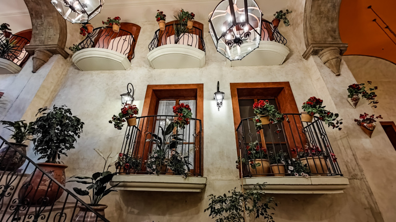 Декоративные балкончики, выходящие на эту лестницу.