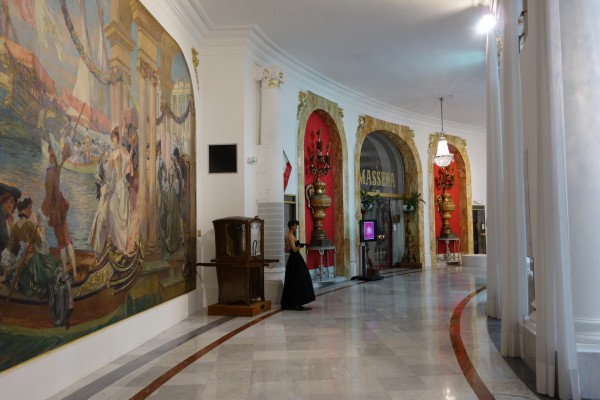 Отель построили в 1913 году (строили его три года), так что ему как раз исполняется сто лет. И для такого возраста он, в принципе, неплохо сохранился. Построил его некий Анри Негреско (фамилия румынская), и он дал отелю свою фамилию. Правда, после Первой мировой Негреско разорился и был вынужден продать отель каким-то бельгийцам. С 1957 года отелем владеет семья Ожье. В отеле развешаны изображения нынешней владелицы - Жанны Ожье. Кстати, вот этот портрет - кисти Игоря Муслимова.