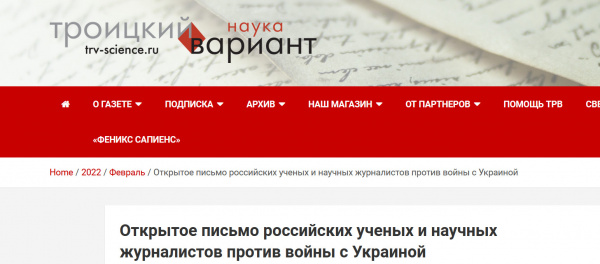 Открытое письмо российских ученых и научных журналистов против войны с Украиной