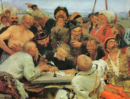 Остап Бендер предполагал «распространять еще не написанную, но гениально задуманную картину «Большевики пишут письмо Чемберлену», по популярной картине художника Репина: «Запорожцы пишут письмо султану».