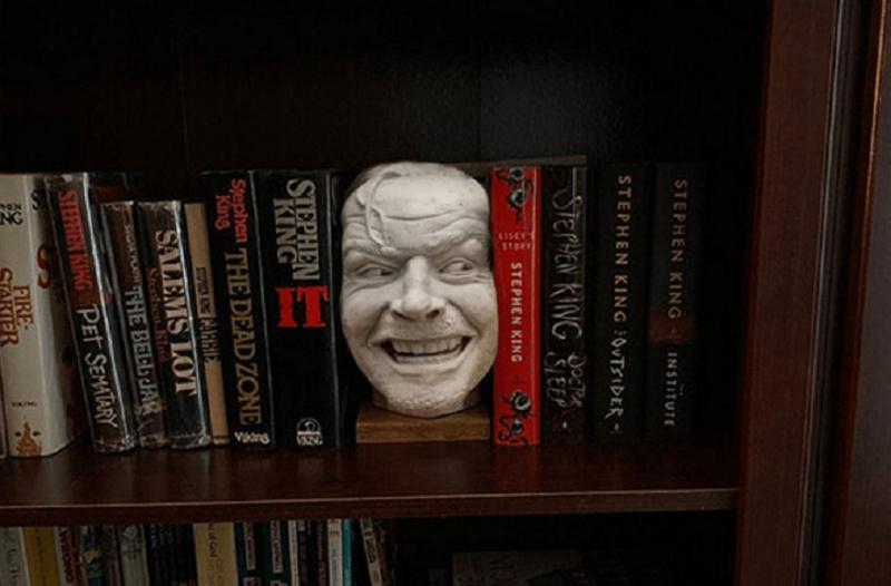 Так, ночером кто-нибудь заберется в дом, зайдет в библиотеку, а там раз - и такая рожа из книжек лупится...