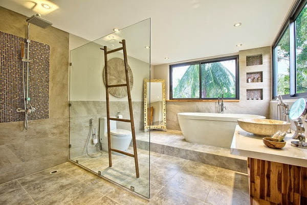 Интересно, а зачем лестница в ванной комнате? Или это интерьерная фишка?