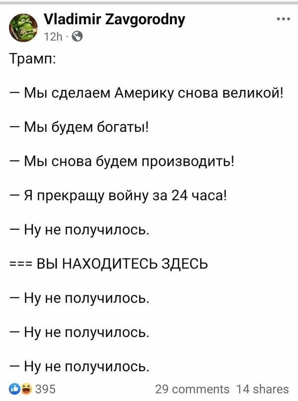 Обещания Трампа формулировал Трамп. Кто его не понял, Трамп не виноват.🤠