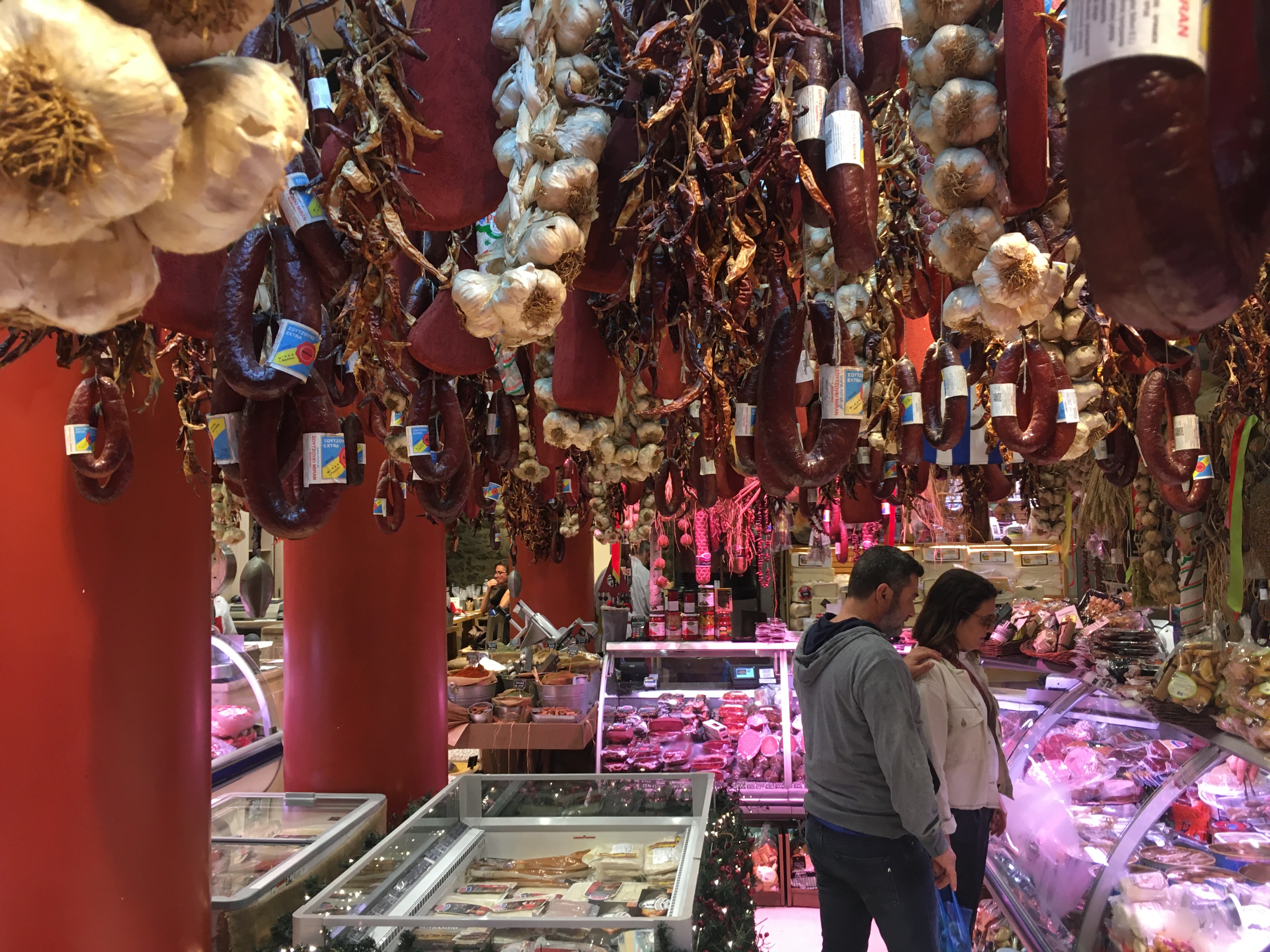 В центре Афин есть магазинчик с колбасами. Выглядит как ад для вегана и потому очень понравился. Я спросил колбасу без свинины и мне предложили суджук.