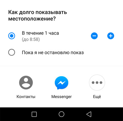 Далее указываете в течение какого срока нужно показывать ваше местоположение: или в течение какого-то количества часов, или до остановки отслеживания вручную.
