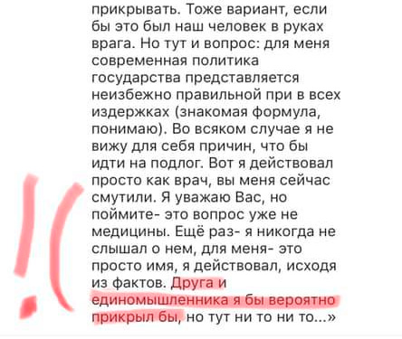 А это что Фейсбук или ВКонтакте? Впрочем неважно. Во после "прикрыть единомышленника" в его профессиональное мнение кто нибудь поверит. И дядьку надо выгонять?Дядька идиот. Выгонять потому что идиот.