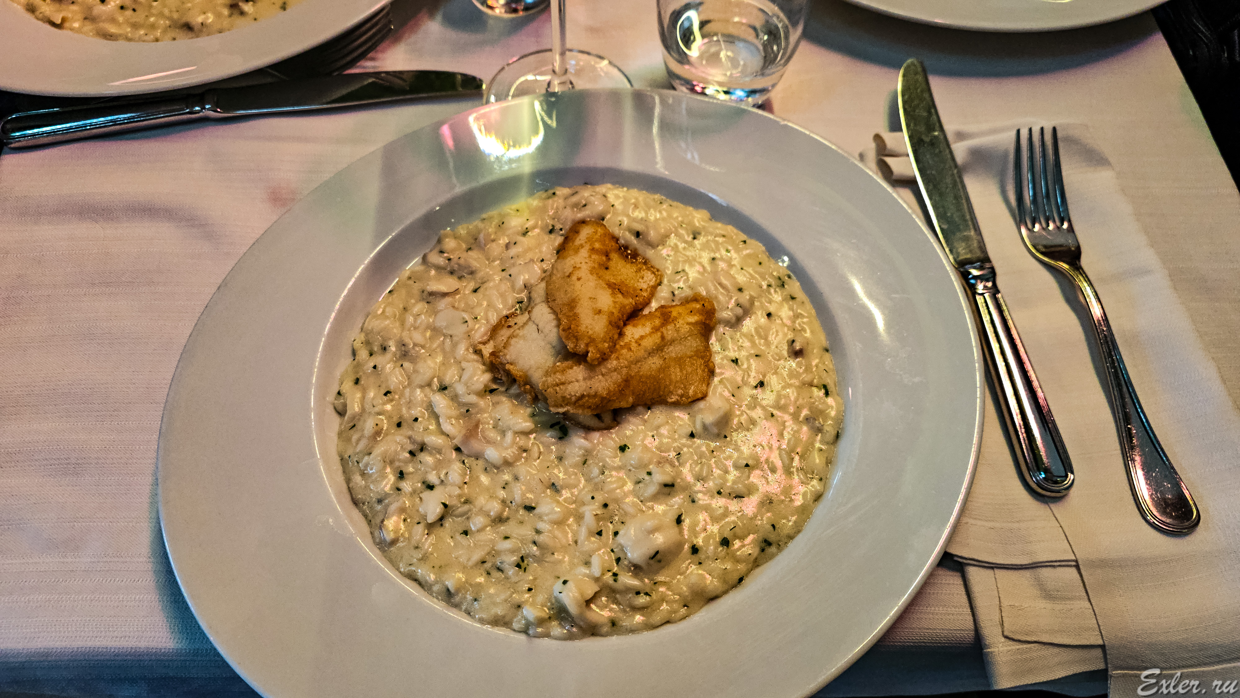Наши гиды очень рекомендовали ризотто с рыбкой из озера, которое делают в местном ресторане. Ризотто оказалось офигенное: наверное, это самое вкусное ризотто, которое я ел в Италии.