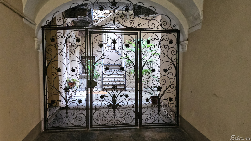 В переулке виден переход, покрытый зеленью. По таким переходам монашки перемещаются между строениями, чтобы ни с кем не контактировать и чтобы их никто не видел. Вот такие они необщительные.
