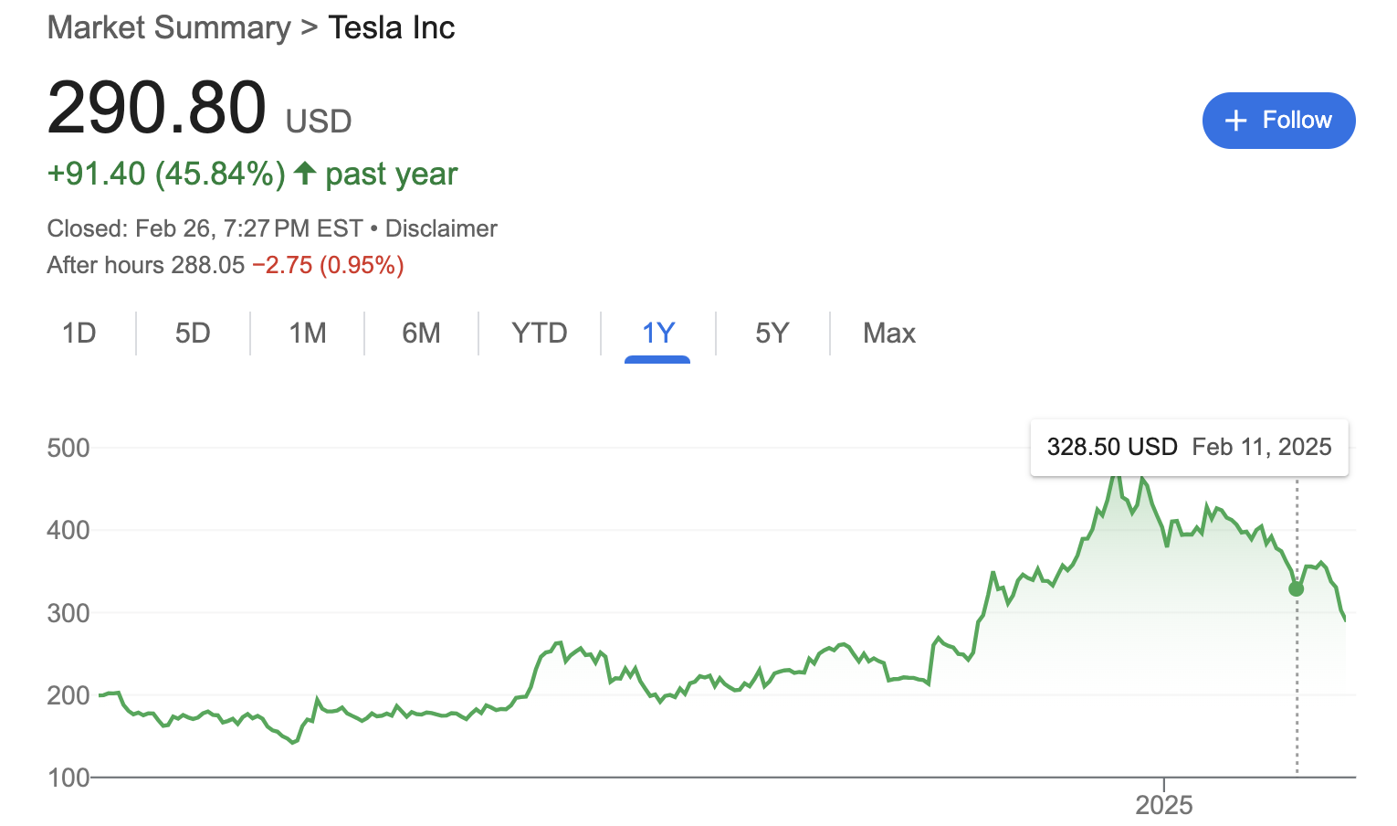 Бедный Маск - год назад акции были по 200 долларов - сейчас по 300..