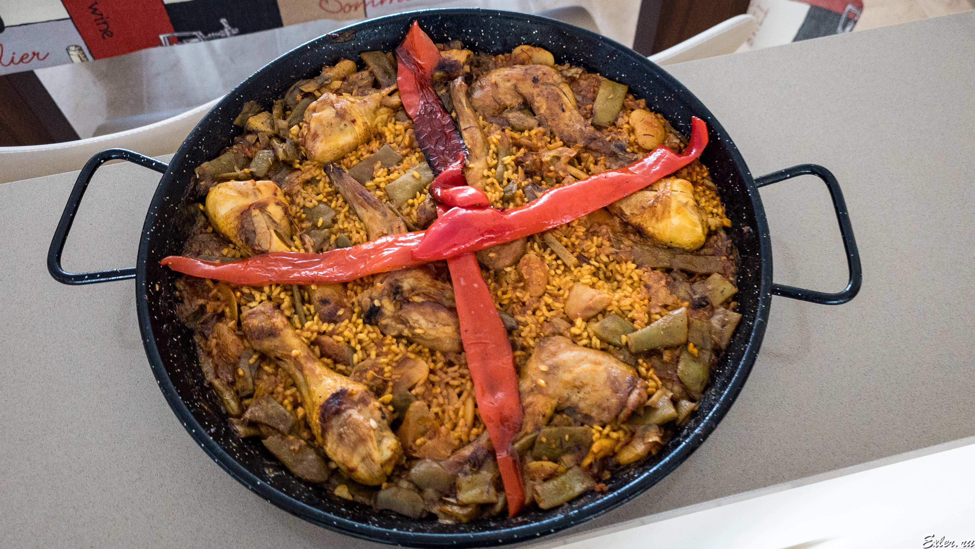 Первая собственноручно сделанная paella valenciana - паэлья по-валенсийски. По традиционному рецепту и безо всяких "костылей", то есть готовый бульон не использовал, бульон делал в паэльере в процессе приготовления.