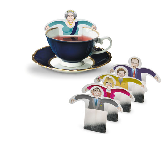 Отличная идея (немцы придумали) - пакетики с чаем в виде британской королевской семьи. В чашке смотрится особенно психоделично.