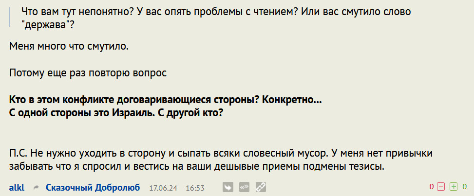 И показательно. За Израиль, как правило, нормальные люди. За Палестину, за очень редким исключением, всякие моральные уроды.