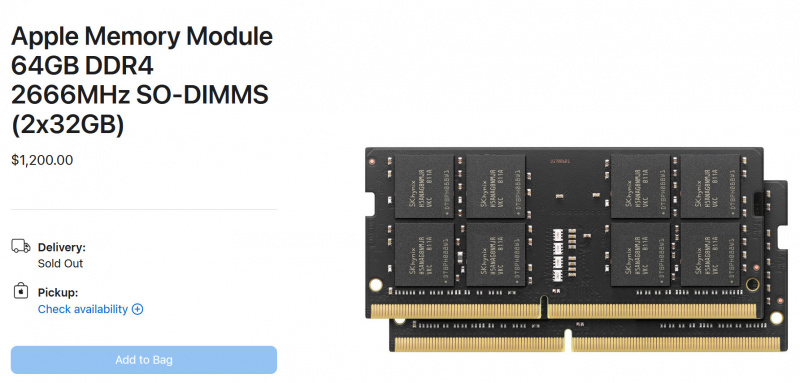 На официальном сайте Apple две пластинки памяти DDR4 по 32 ГБ продаются всего-то за $1200.