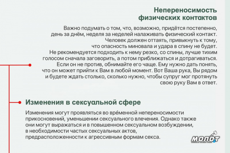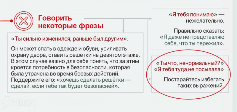 Я достаточно часто видел людей, вернувшихся из Газы или с Севера (Голанские Высоты и т.п.) - так вот эти советы не для них и не для их жен. Да, у них есть свои ПТСР (а у кого во время войны его нет?), но они выглядят не так, как у российских воинов. Я подозреваю, что и у украинских военных они выглядят иначе. хотя тут у меня информации намного меньше.