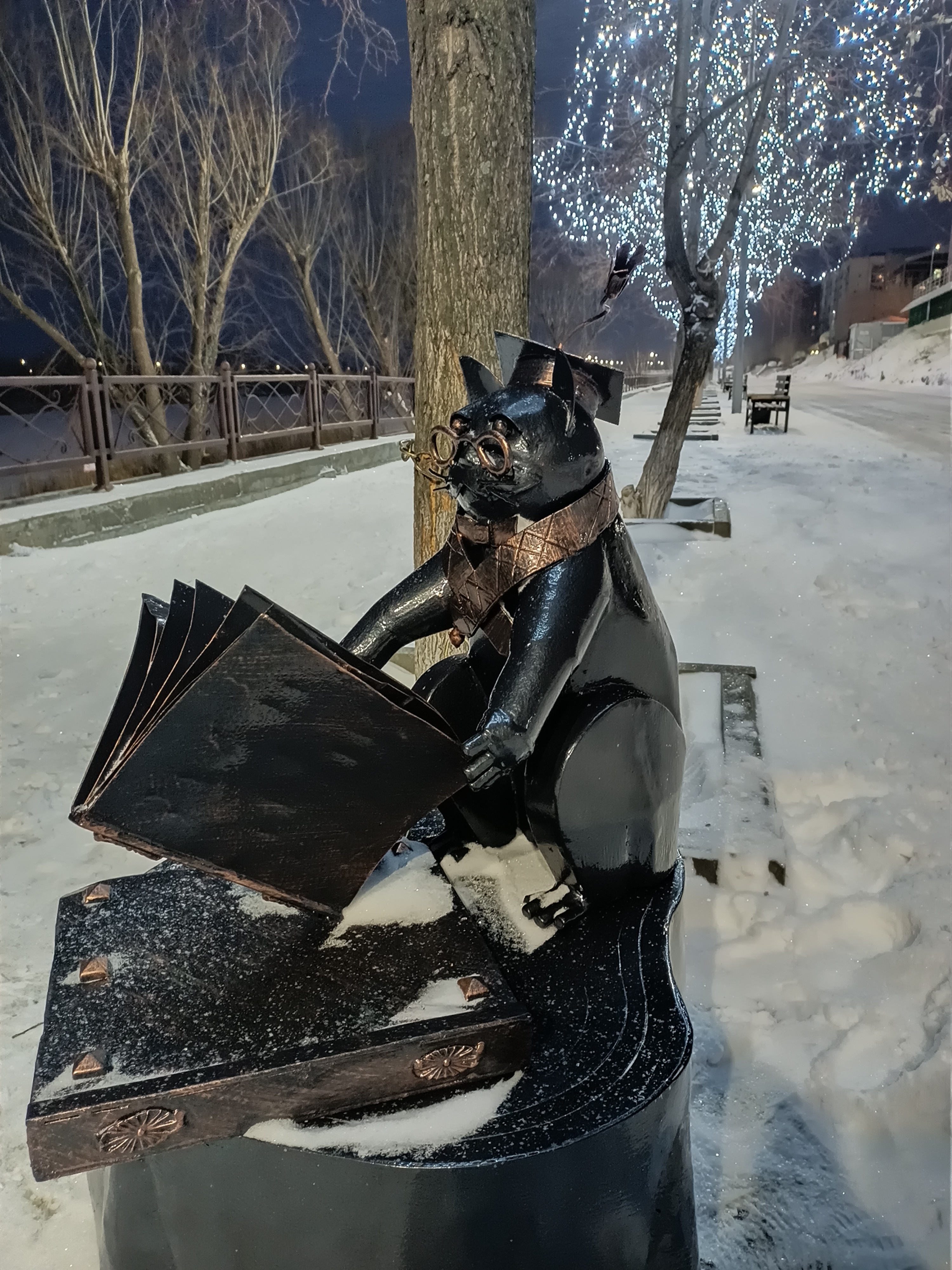 В славном городе Кургане установили вот такой памятник кошке (via). Кот Бублик, в общем, одобряет это начинание, но совершенно не понимает, на черта кошке такие буфера. Похоже, что скульптор во время создания этого произведения искусства думал о чем-то своем.
