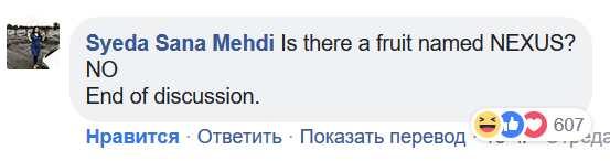 "Существует ли фрукт с названием NEXUS? Нет! Конец дискуссии!"