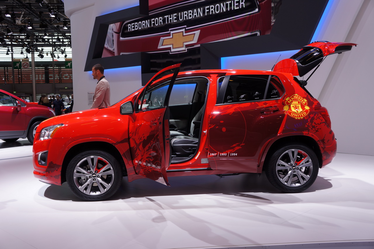 Кстати, одна из моделей Trax была представлена в образе команды "Манчестер Юнайтед", с которой Chevrolet сотрудничает. Там вроде даже рядом с машиной стоял кто-то из футболистов "Манчестера". Я, правда, не спец, так что не отличу Пауэлла от Клеверли, но вообще мужик был явно похож на Клеверли.