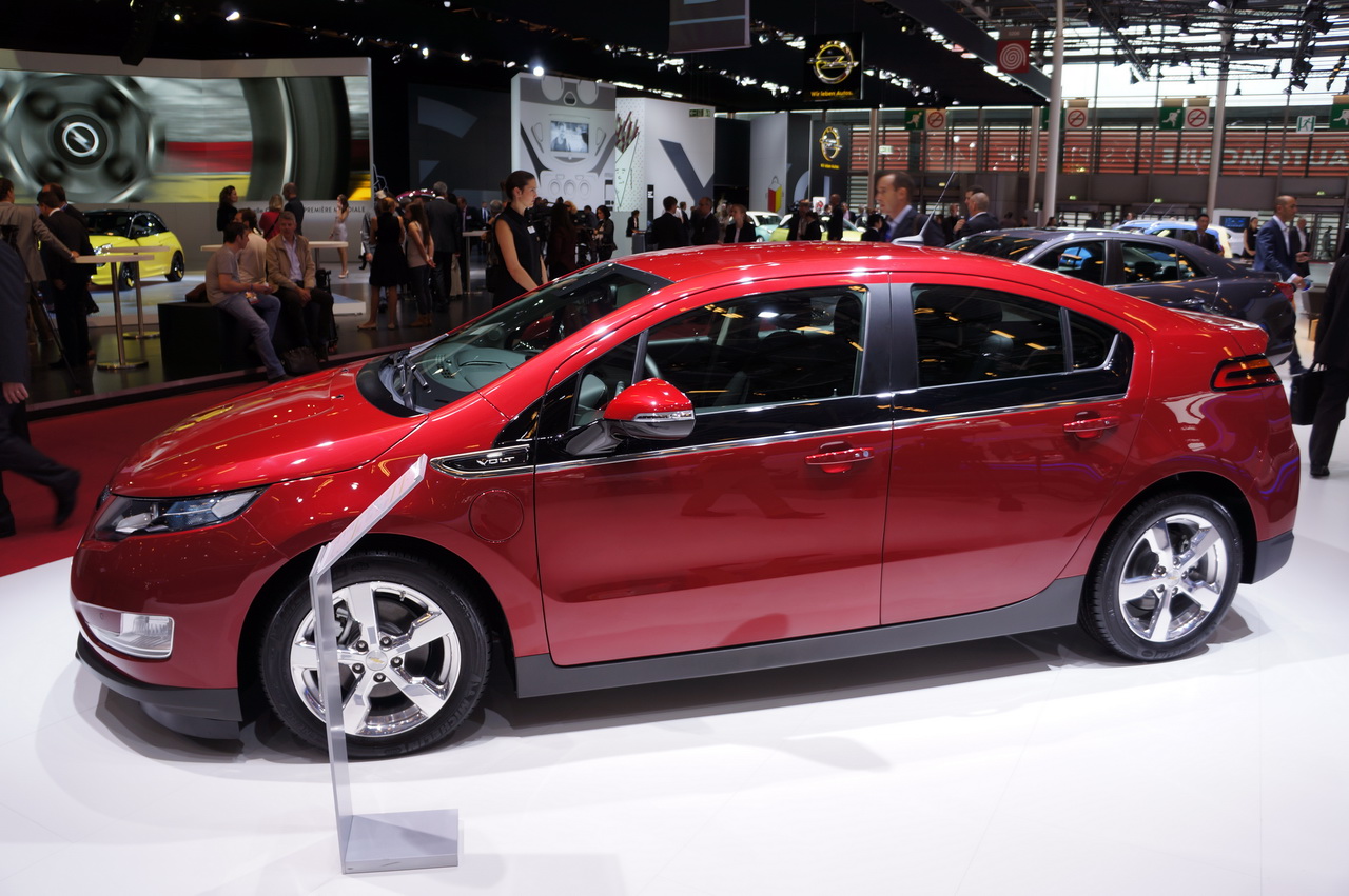 Гибрид Chevrolet Volt. Модель довольно своеобразная. Volt от остальных электрических или гибридных систем отличается тем, что на протяжении 60 км он приводится в движение электричеством, накопленным в батарее на 16 кВт/ч. Когда заряд заканчивается, встроенный генератор начинает производить электричество, питающее батареи, увеличивая дистанцию пробега аж до 500 км. (Так, по крайней мере, говорит производитель.) Полная зарядка осуществляется от обычной розетки примерно за три часа.
