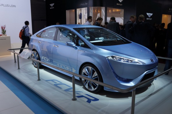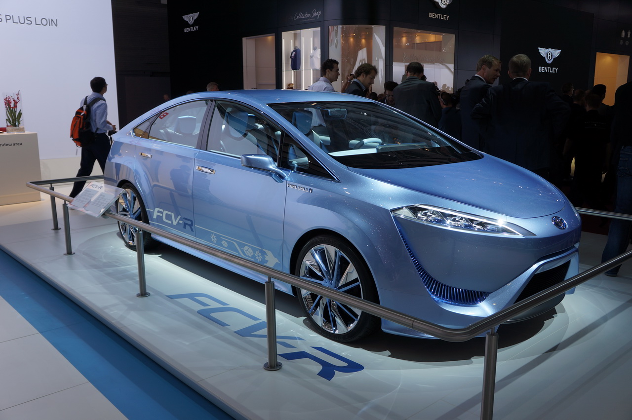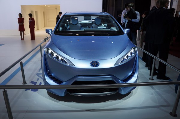 Дальше идет конкретно голубенький со всех сторон Toyota FCV-R, а голубенький он - потому что на водородных топливных элементах. Toyota всегда тяготела к эдакому бульдожьему дизайну (достаточно вспомнить Avensis), и тут себе не изменяет - морда голубого красавца сбоку конкретно напоминает бульдога с брылями. Бр-р-р-р... Впрочем, в анфас выглядит получше.
