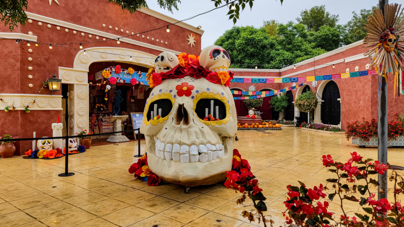 Несколько раз в году парк специальным образом оформляют под какой-нибудь праздник. В этот наш приезд ПортАвентура готовился встречать празник Хэллоуин, так что он соответствующим образом и был украшен.