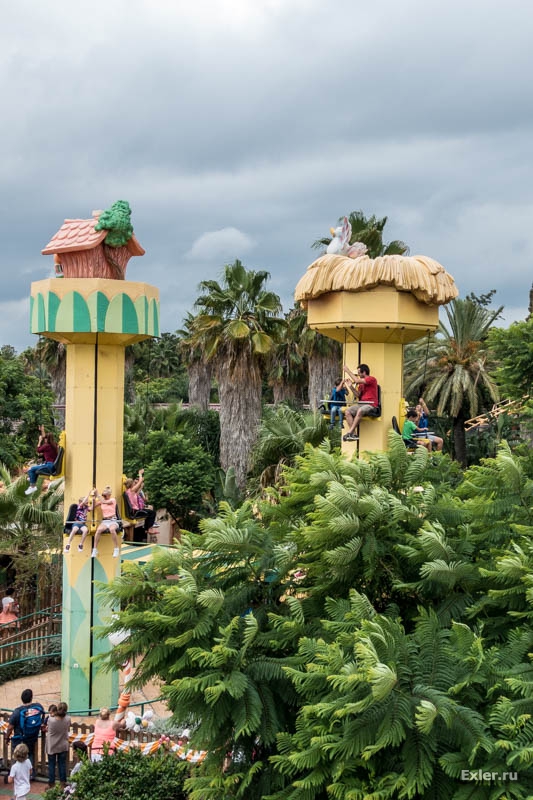 Садишься в кресло, подтягиваешься наверх на канате - потом быстро летишь вниз. В парке есть еще и взрослый вариант этого аттракциона, но о нем - позже.