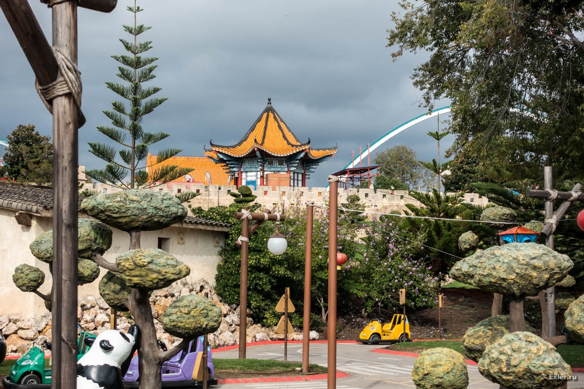 Мы туда приехали в пятницу после обеда и по парковке было понятно, что народу в парке немного. В высокий сезон там дикие толпы - за год парк посещает порядка 4 миллионов человек. У меня знакомые после посещения этого парка в июле долго ругались: говорили, что на каждый аттракцион надо было стоять часа по два, так что они просто даром потратили время. (Фото все кликабельны.)