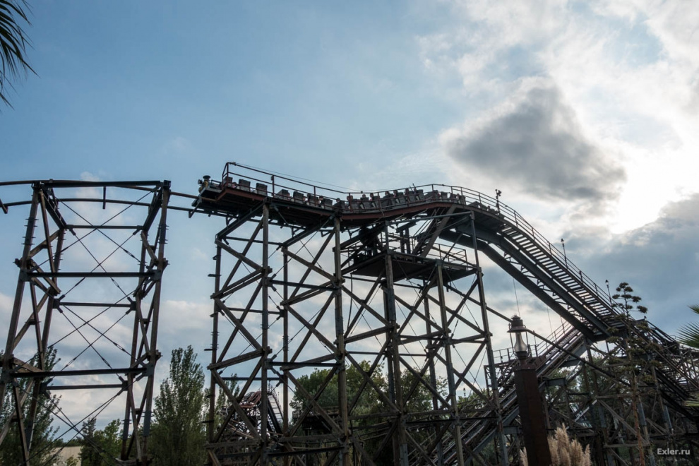 Перешли в зону, где располагаются основные американские горки - их несколько штук, причем одна страшнее другой. Визг там стоит - непрерывный.