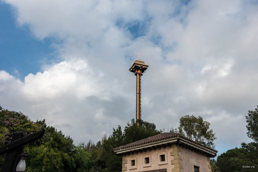 А здесь тебя на креслице поднимают на самый верх башни, а потом долго летишь вниз, болтая ногами, в свободном падении. Визжат там даже громче, чем на американских горках. И говорят, что очень страшно.