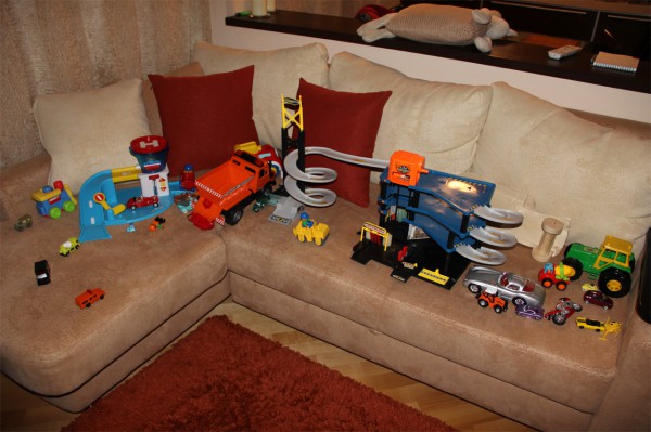 А у нас все это еще на пол перетекает. До сих пор удивляемся, как это ребенок умудряется за 10 минут так... "преобразить" комнату. Причем свое место для игр у парня есть, они видимо с котом родственники, тому купили кошачий домик за сто тыщ милионов, а этот гад спит где угодно только не в нем.