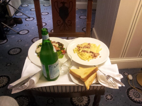 В 4-х звездочном отеле класса люкс Astor Saint-Honore, где радушие и комфорт соревнуются с соблазнами кухни (это я цитирую с их сайта), вот это вот угробище на тарелке справа совершенно серьезно называют Pates Carbonara accompagne de son Parmesan.